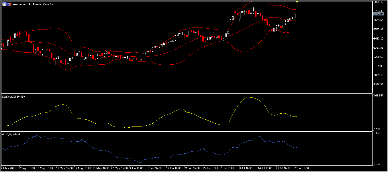 And then comes the Bollinger Bands indicator, with its current upper side at 3,746.81, which connects the tops of the stock price movement and indicates the maximum price, and we find the lower side of the channel at 3,505.37, which represents the lower limit of the price, and the mid-line of the channel comes at 3,626.09. The narrowing of the channel range appears on May 27, which indicates a rise in the price, as the narrowness of the channel was repeated at the beginning of July 21. The movement of the stock price has broken the middle line of the channel, which indicates a positive sign of a rise in the price, and the price has remained broken since July 23 to this day. The ATR shows a value of 43.64.