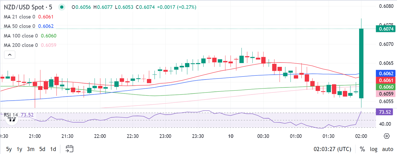 The New Zealand Dollar catches a fresh bid in an immediate reaction to the RBNZ ’s status quo. The NZD/USD pair currently trades around 0.6067, up 0.15% on the day.