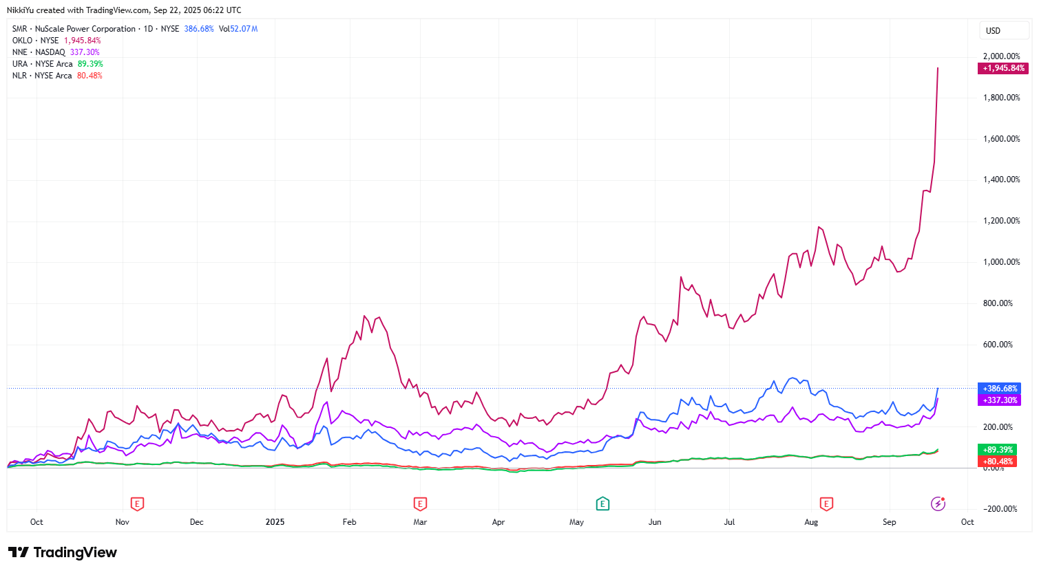 Nations and Tech giants are turning to nuclear as a stable, sovereign energy source. Small modular reactors (SMRs) and fusion research have gained traction driven by geopolitical tailwinds. Such is the case for the meteoric rises responsible for $OKLO $SMR $NNE amongst the $URA and $NLR ETFs. If rate of change (ROC) remains elevated or continues rising, it confirms sustained momentum — not just a one-off spike which often leads to higher highs.