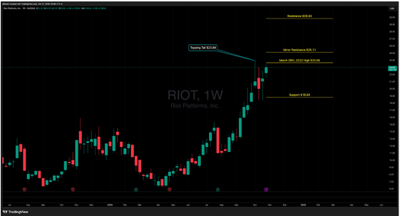 Riot Platforms technical breakdown: $23.94 barrier unlocks a run to $29.84