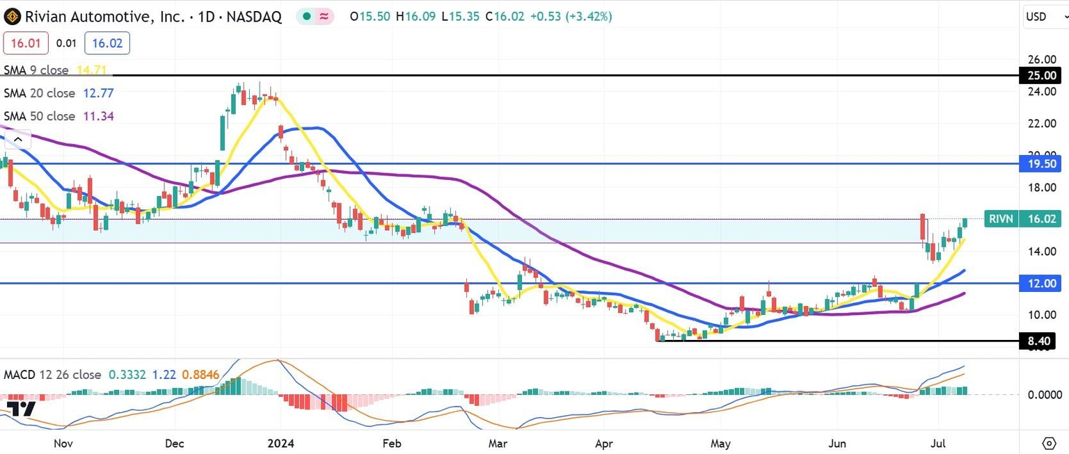 Rivian Automotive Stock Forecast: RIVN breaks above $16 resistance threshold ahead of earnings