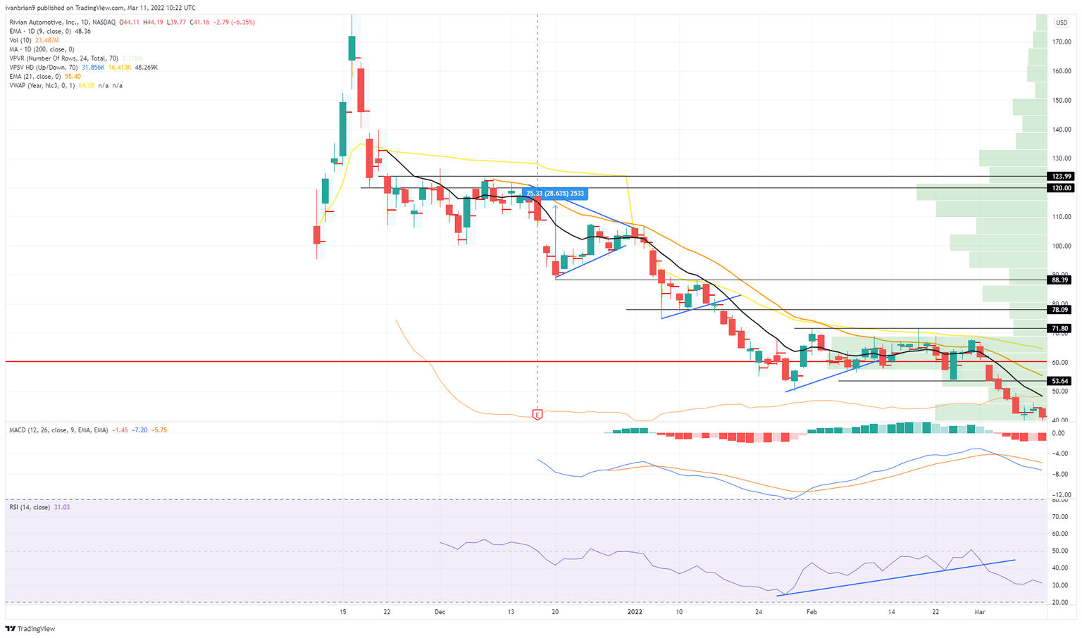Rivian (RIVN) stock looks set for more losses going forward as earnings disappointed investors after the close on Thursday. Rivian was one of the biggest IPOs ever in the US when it launched at $78 a share in November. The stock pushed on in a wave of euphoria and breached $179, which made it one of the top most valuable auto manufacturers in the world. This was despite the company not actually entering into production.