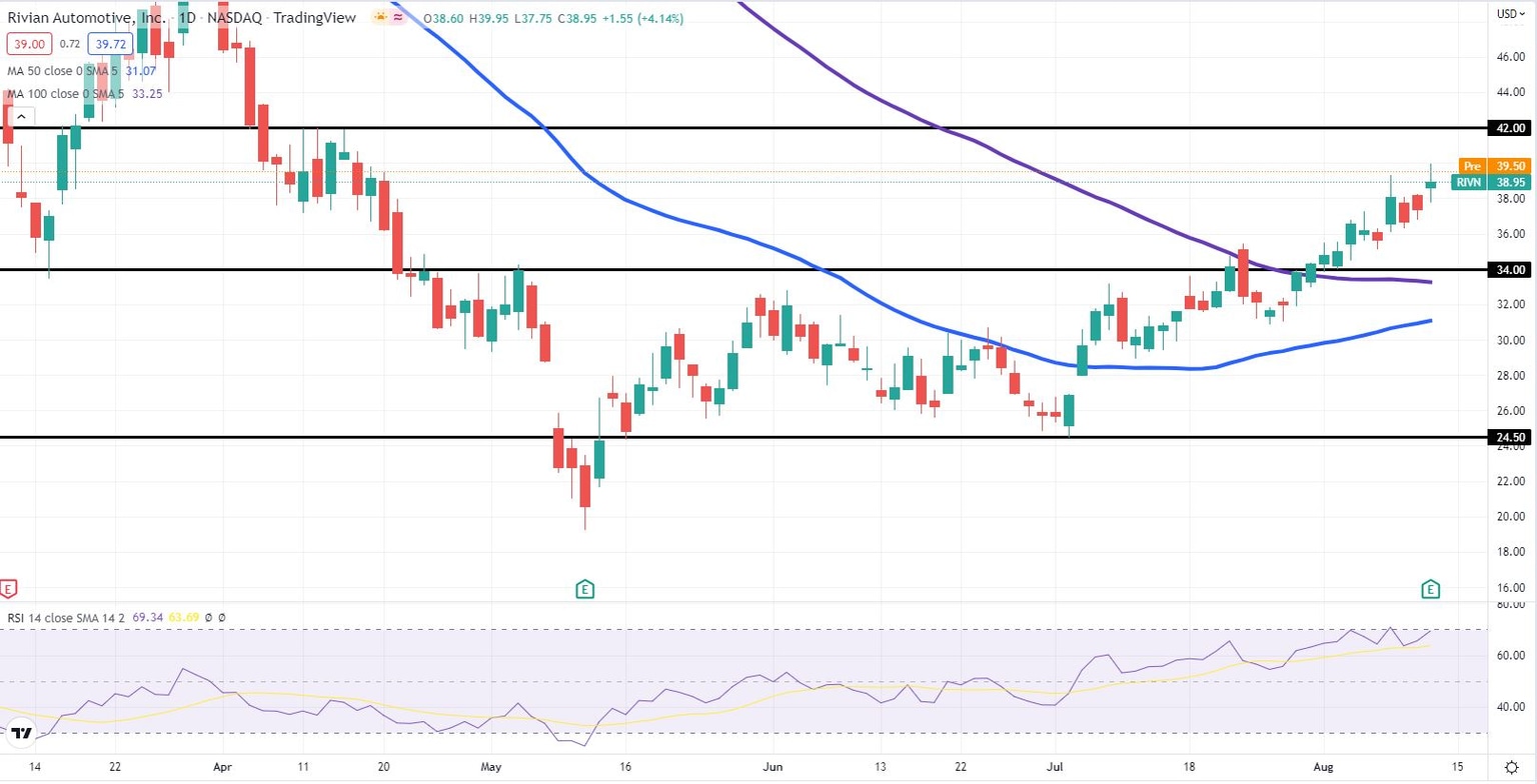 Rivian (RIVN) stock is largely flat on Friday after releasing second quarter earnings that disappoined on the bottom line late Thursday. RIVN stock is trading at $38.92 in Friday's premarket despite losing as much as 4% on Thursday after the results were released. This is partly due to the market first paying attention to the earnings per share miss but then focusing more strongly on the production story. Wedbush Securities then helped things by boosting its price target from $40 to $45 on Friday, saying that Rivian was showing real promise with its ability to deal with early production obstacles.