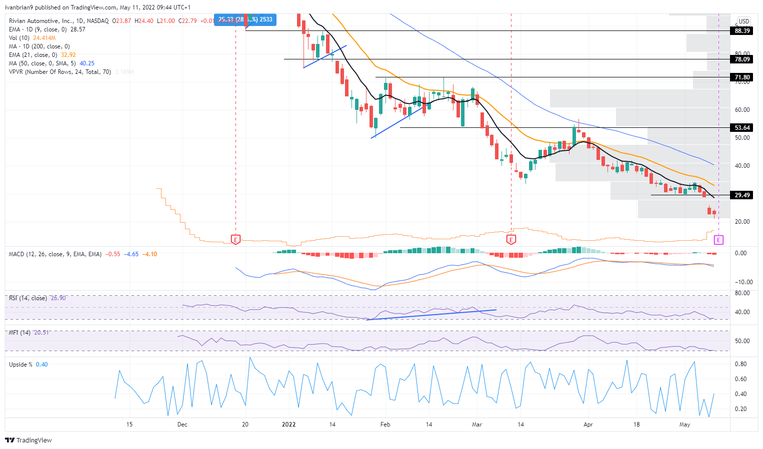 Rivian (RIVN) stock chart, daily