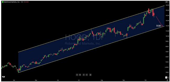 The charts are bearish and the valuation metrics are extreme. Be careful on HOOD.