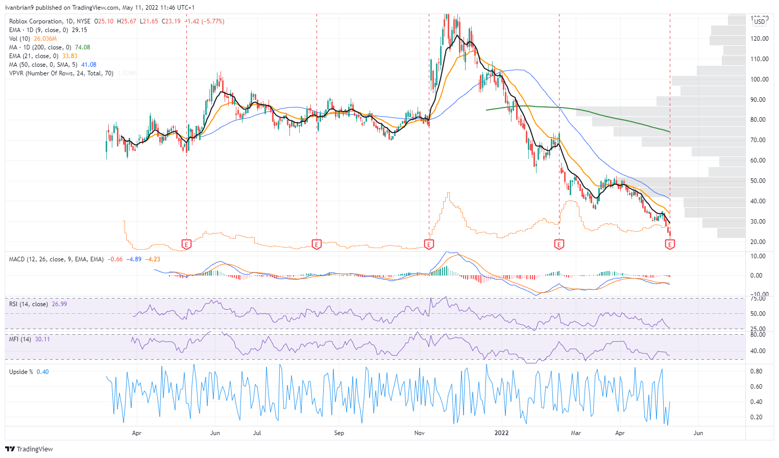 Roblox (RBLX), a major metaverse contender, reported earnings after the close on Tuesday, and the initial reaction was poor. This is not surprising given bears are lining up everything in their sights at the moment and using any excuse to knock share prices lower. Roblox had already been under pressure – another pandemic darling stock and another colossal loss for 2022. Expectations going into earnings then were not high.