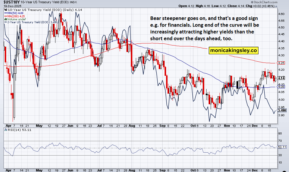 Semis and discretionaries were sold into the closing bell – unlike Nasdaq, biotech or smallcaps, which is a sign good enough that the final full week‘s message is that Santa Claus rally can enter its opening stage over the next two shortened weeks – time to show for institutions that they have 2025 winners in their portfolio after all (hello NVDA scoring almost 4% on the day – I was though clear that finally we‘ll have a fine day in ORCL, and that‘s way more important for tech as such at the moment). Volatility metrics have declined, and Wednesday‘s one-way flush was fully erased.
