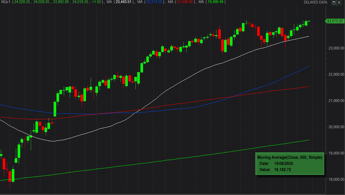 Emini Nasdaq creeps higher to retest the all time high at 24000/24068 as we consolidate for 2 months.