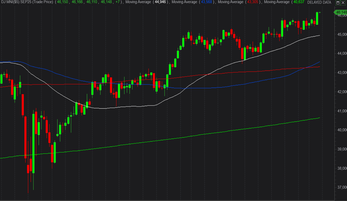 Emini Dow Jones beat 46630 for a chance to retest the all time high at 45800/841.