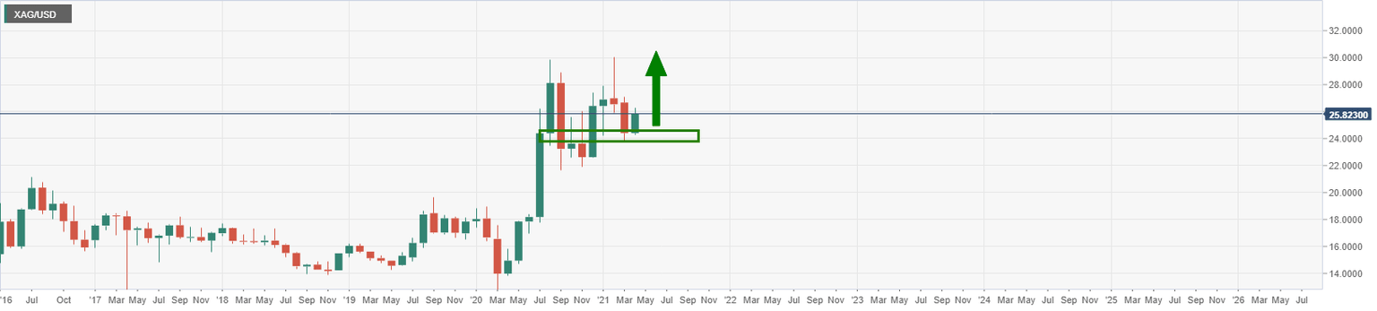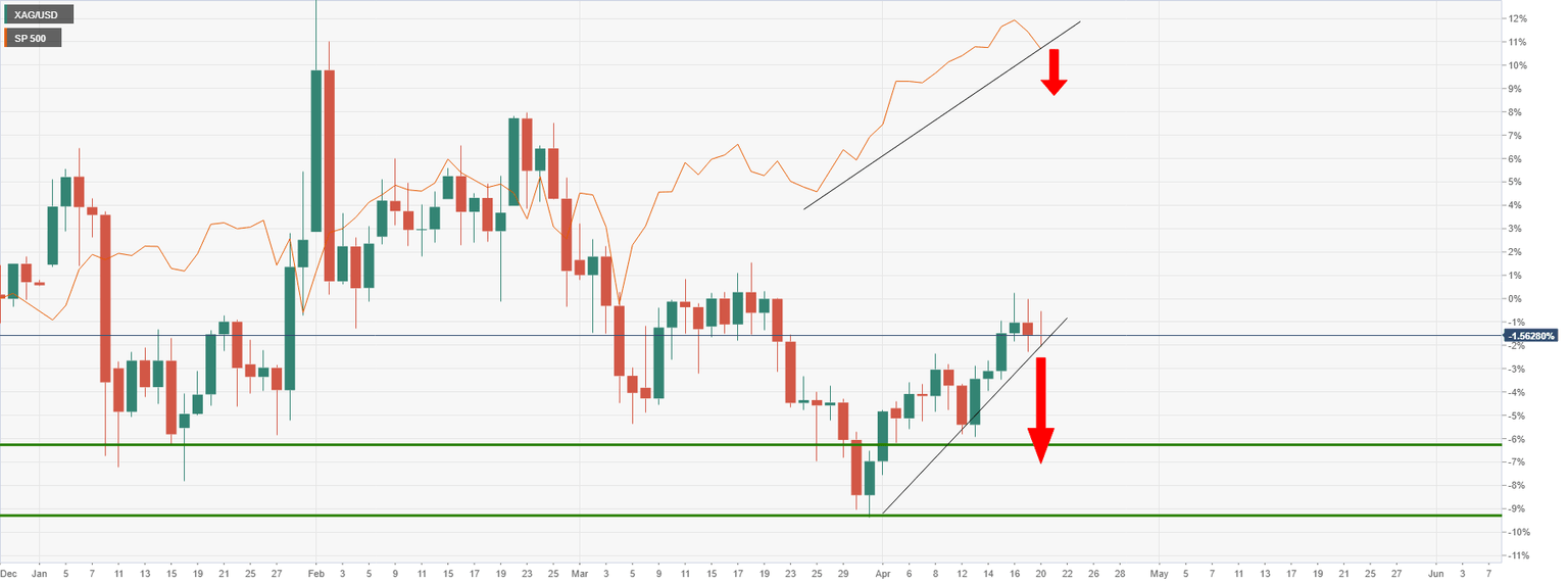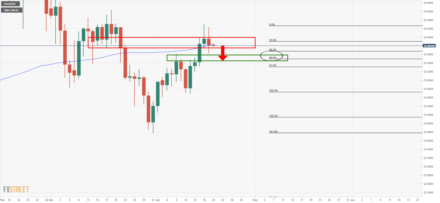 That being said, the US dollar is in the hands of the bulls from critical support which could give rise to a continuation in the downside on the daily chart for silver prices: