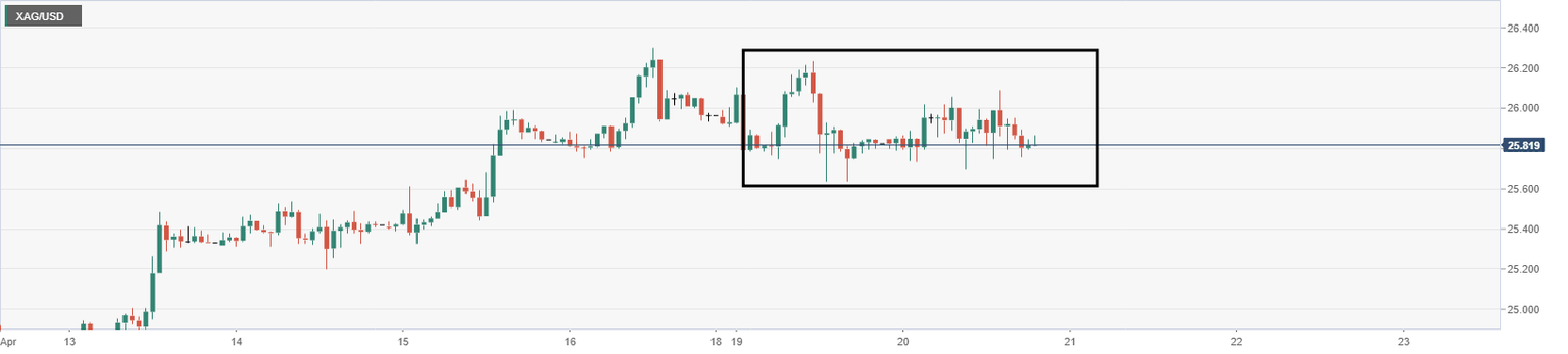 Silver prices have stalled at daily resistance and in the day’s move to the downside, it has subsequently formed a new 4-hour resistance at 25.91.