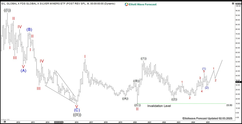 SIL (Silver Miners ETF) is a financial product designed to mirror the performance of silver mining companies. It offers investors a straightforward way to gain exposure to the silver market without directly purchasing physical silver or individual mining stocks. SIL diversifies risk by spreading investments across multiple companies within the sector, potentially providing a hedge against volatility in silver prices. In this article, we will look at the Elliott Wave outlook for the ETF.