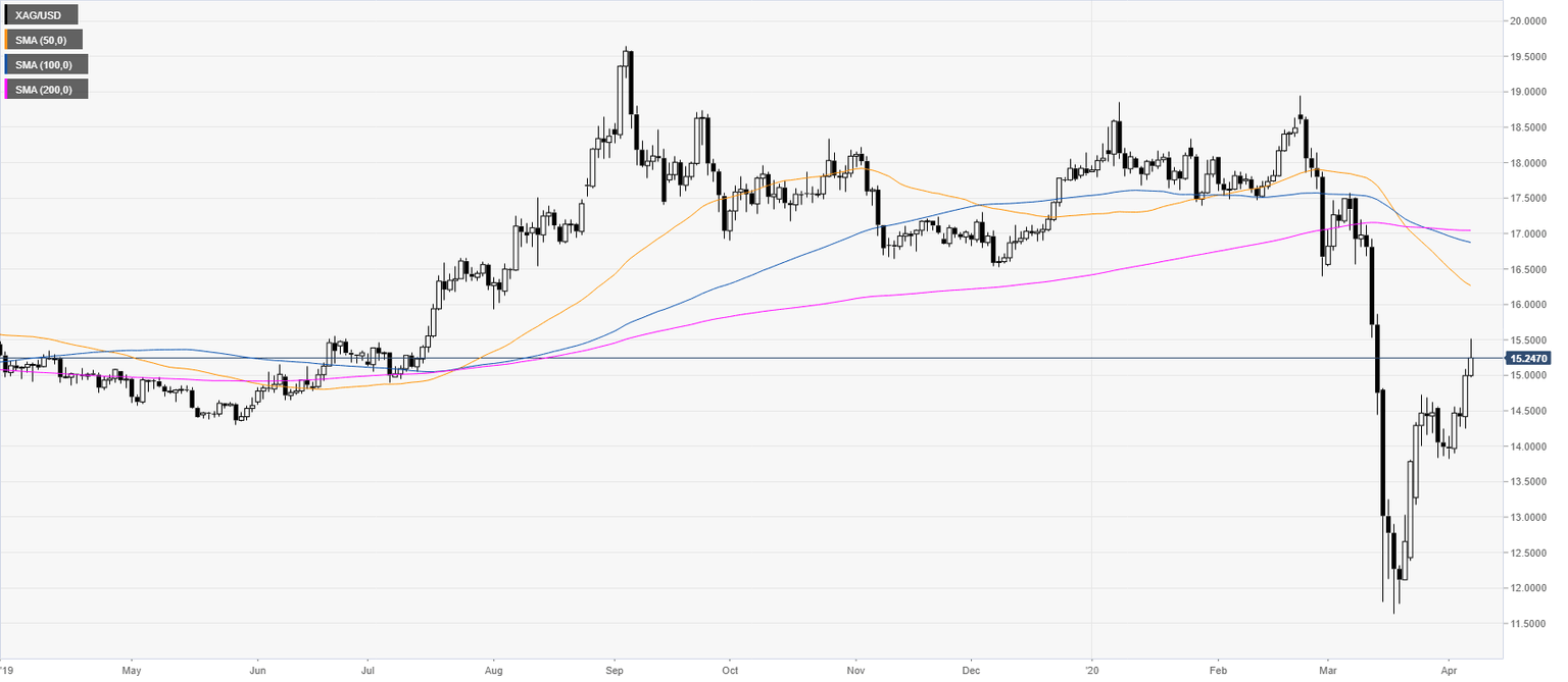- XAG/USD bounced up sharply from the 2020 lows as the Federal Reserve introduced its largest stimulus package in history.