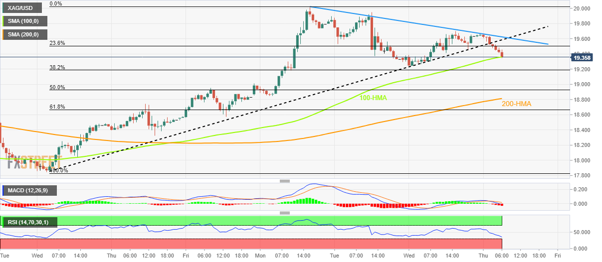 It should be noted, however, that the 100-HMA level near $19.30 tests the XAG/USD sellers before directing them to the $19.00 threshold.