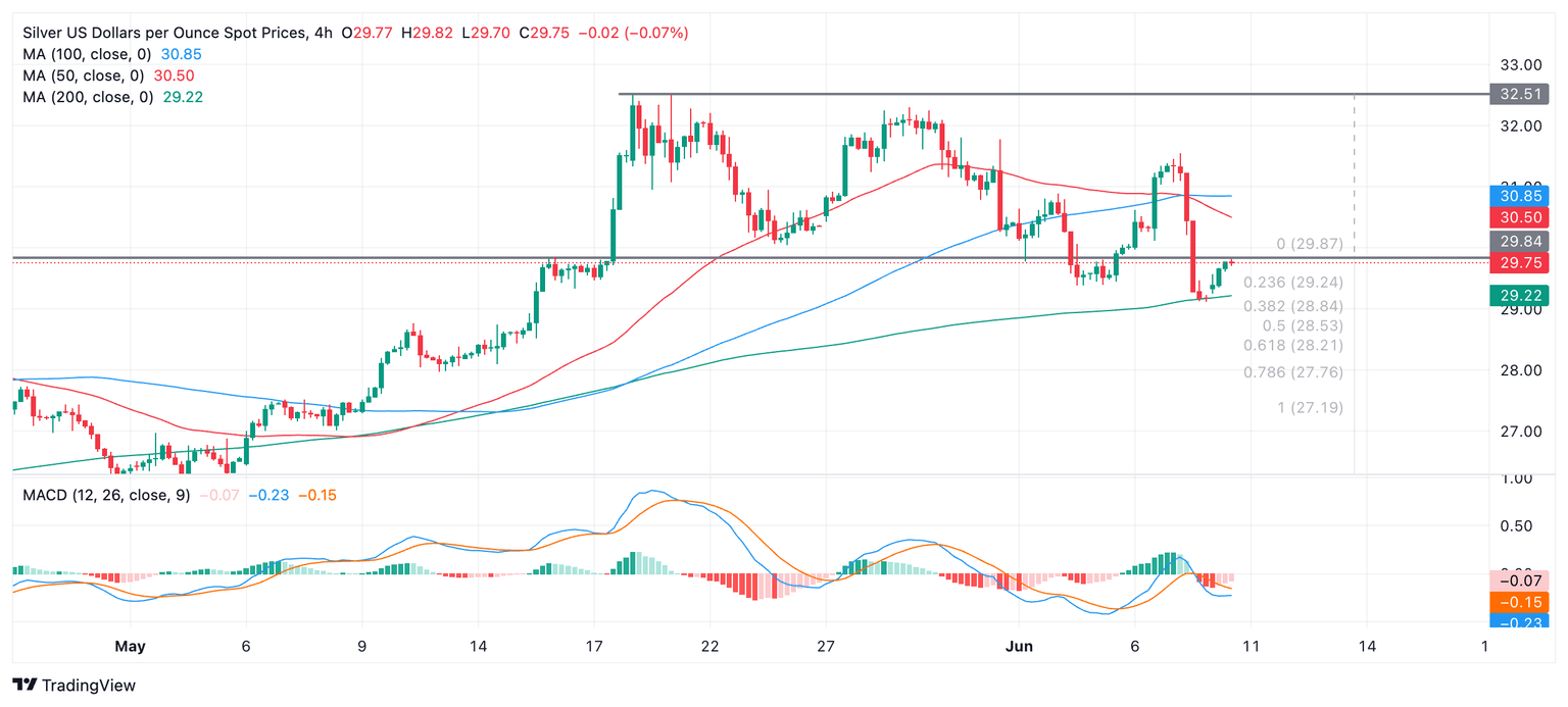 The precious metal fell to a new low at $29.12, at the level of the 200 Simple Moving Average (SMA) following the release of market-moving data on Friday.