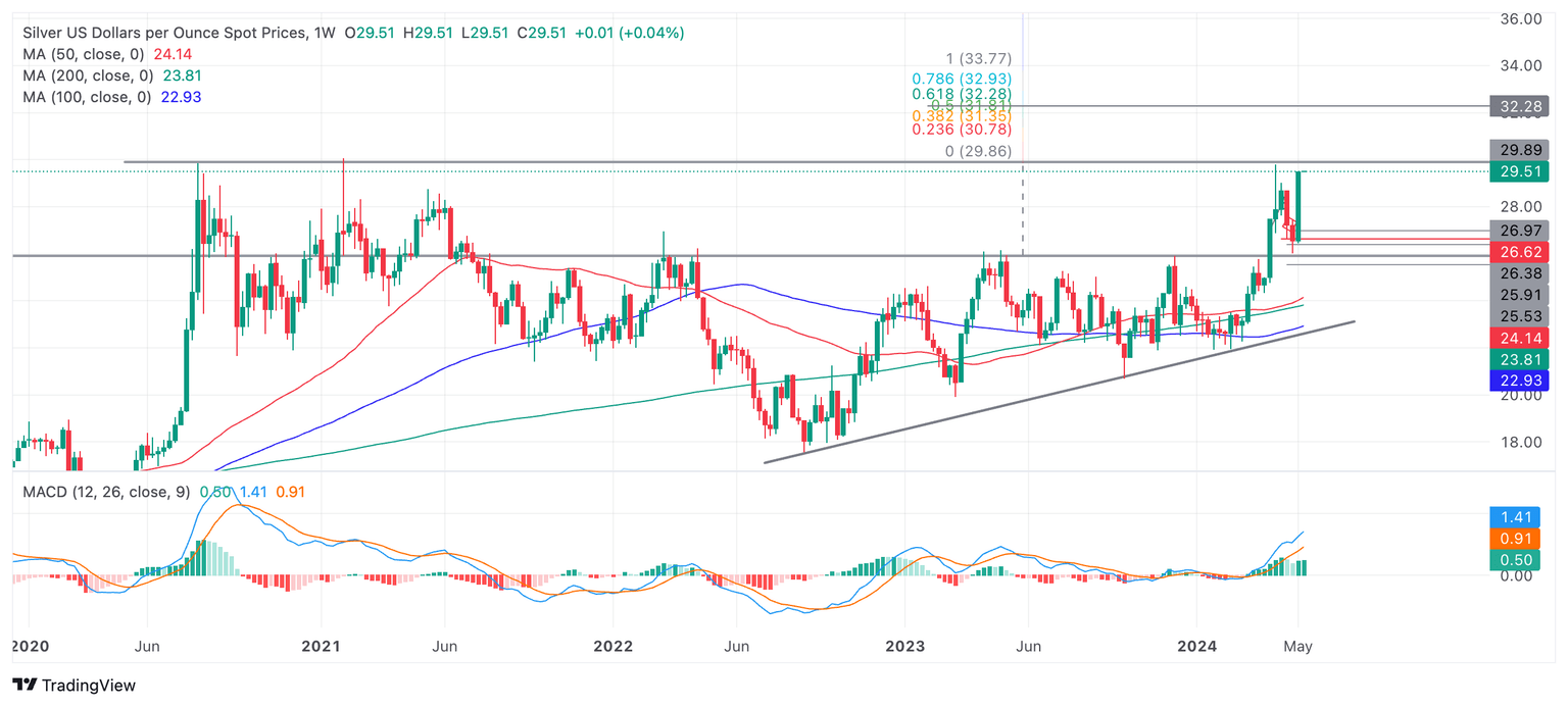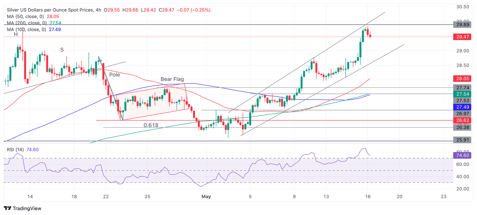 - Silver price has rallied up to just shy of $30.00, a key resistance level.