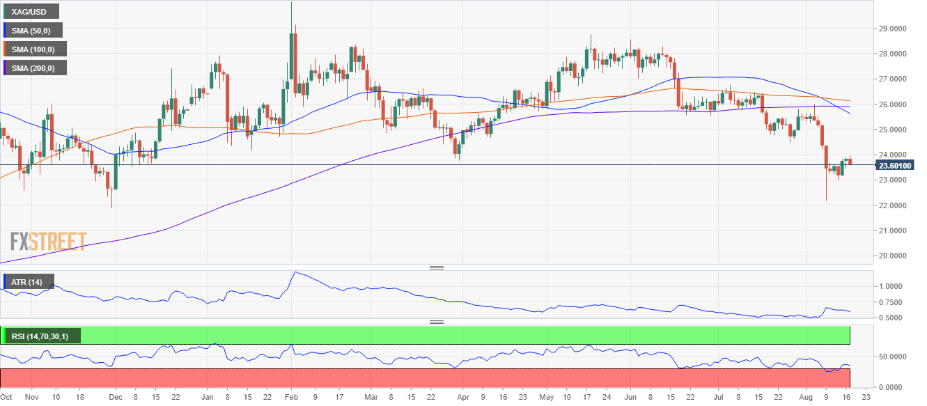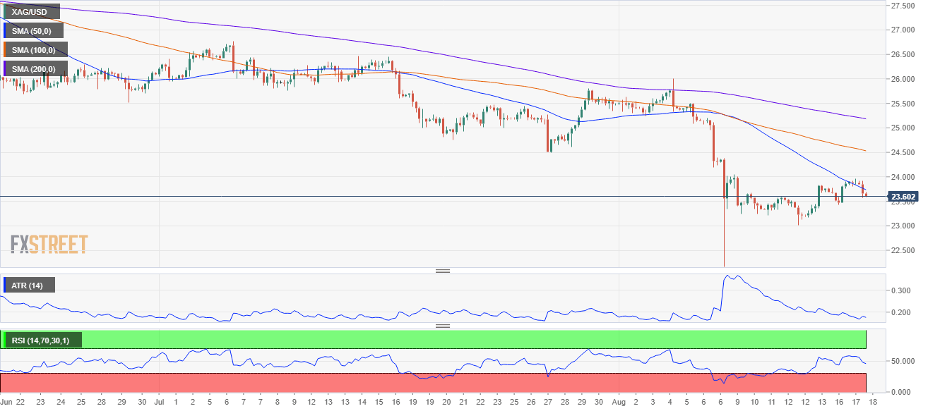 Silver Price Analysis: sellers in charge with XAG/USD down almost 1%, eye $23.50
