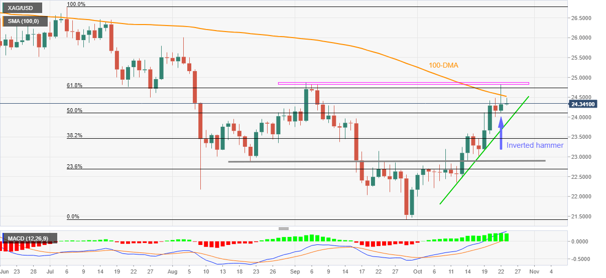 Silver Price Analysis: XAG/USD bulls step back from 100-DMA