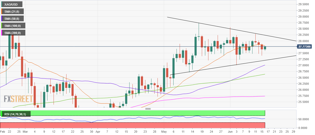 Silver price is on track to recapture the $28 threshold, although it needs a sustained break above the 21-Daily Moving Average (DMA) at $27.81 to extend the recovery momentum.