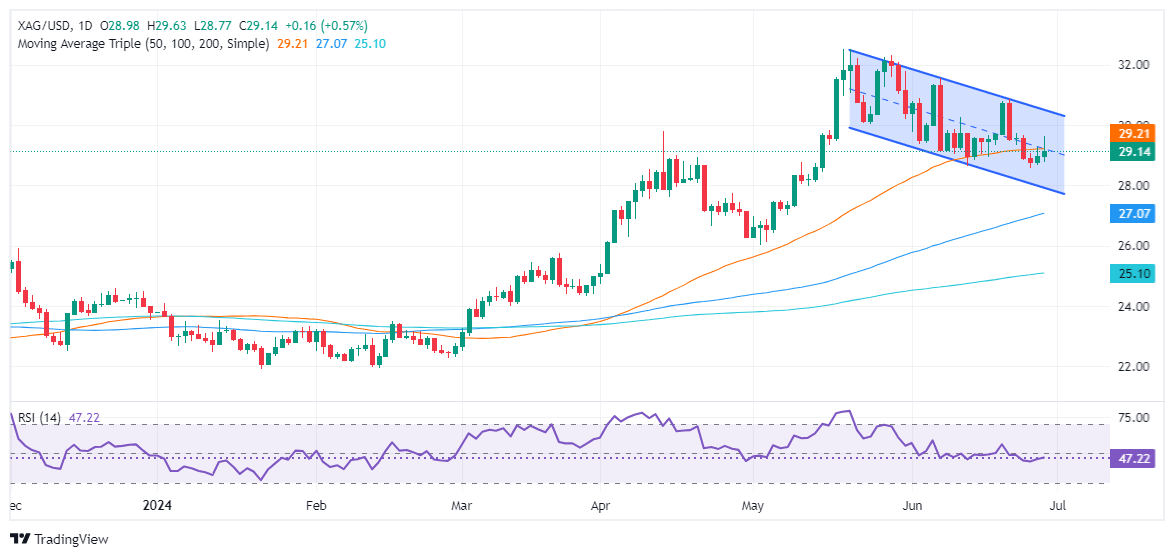 Silver price registered gains of 0.49% as inflationary figures released by the US Bureau of Economic Analysis (BEA) dipped as expected, reigniting Fed rate cut hopes amongst investors. Therefore, the Greenback edged lower, while XAG/USD traded at $29.13 after hitting a daily low of $28.78.