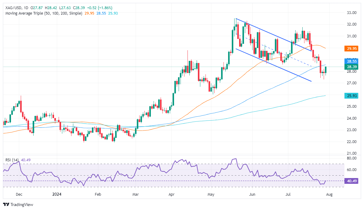 Conversely, if XAG/USD extends its recent gains above the 100-DMA at $28.54, the $29.00 figure will be exposed. On further strength, the next resistance would be the 50-DMA at $29.93, before testing the $30.00 mark.