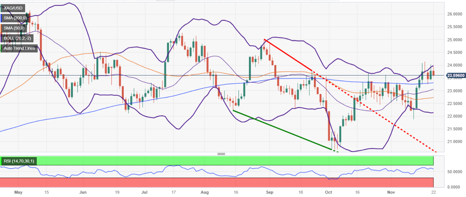 - If XAG/USD retraces past the 200-DMA, sellers target $22.70.