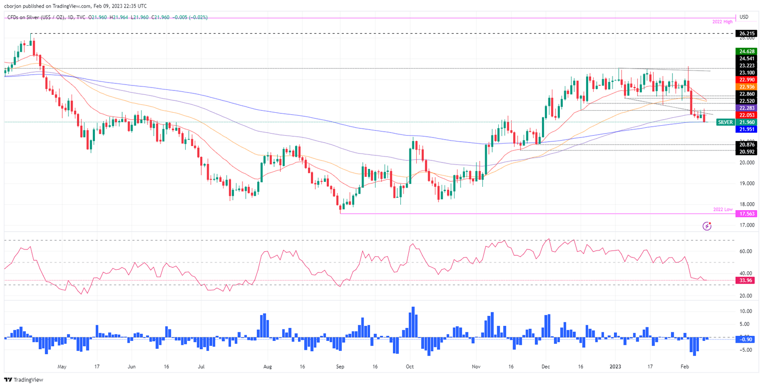 Silver Price Analysis: XAG/USD dives below the 100/200-DMA, turns bearish, eyeing $21.00