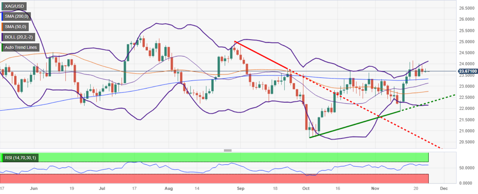 Silver Price Analysis: XAG/USD edges up, maintain its bullish bias, buyers target $24.00