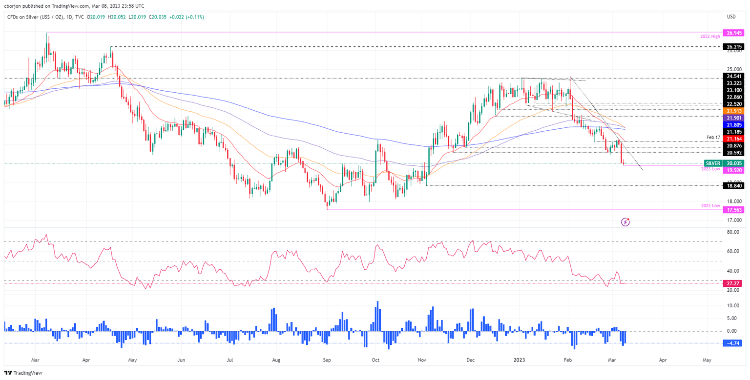Silver price reached a multi-month low of around $19.92, but buyers stepped in, dragging the XAG/USD price above the $20.00 figure.