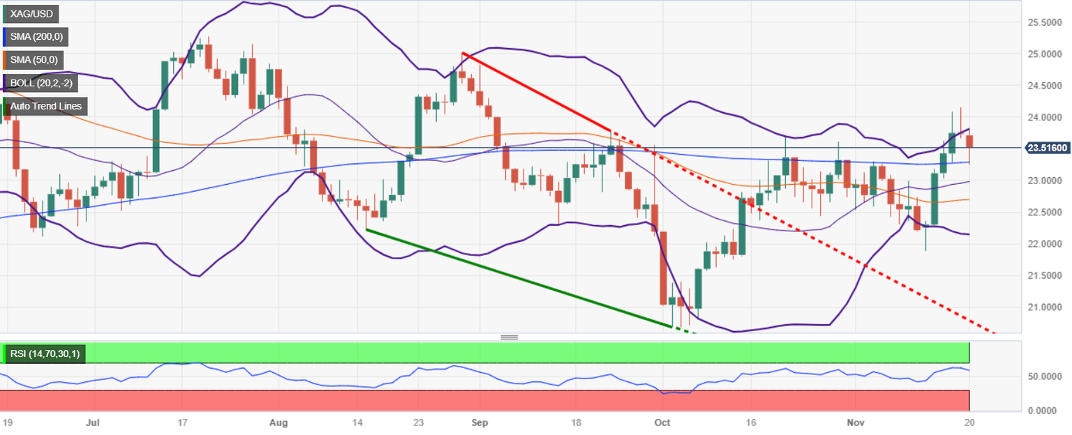 - Silver prices (XAG/USD) are struggling to maintain the upward momentum that started last Monday, currently facing consecutive days of losses.