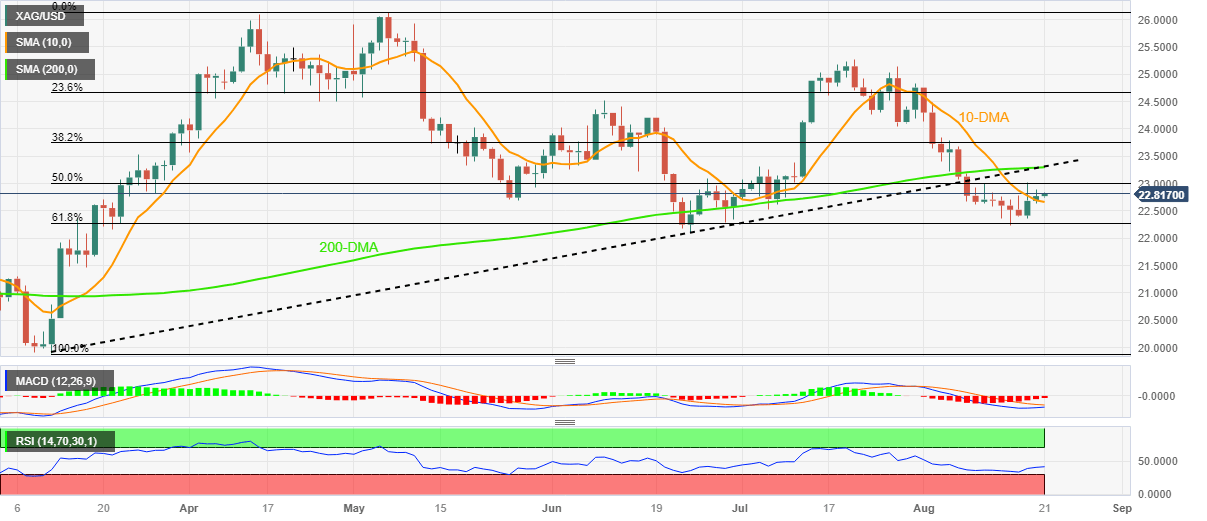 Silver Price Analysis: XAG/USD looks to recapture $23.00 on 10-DMA breakout