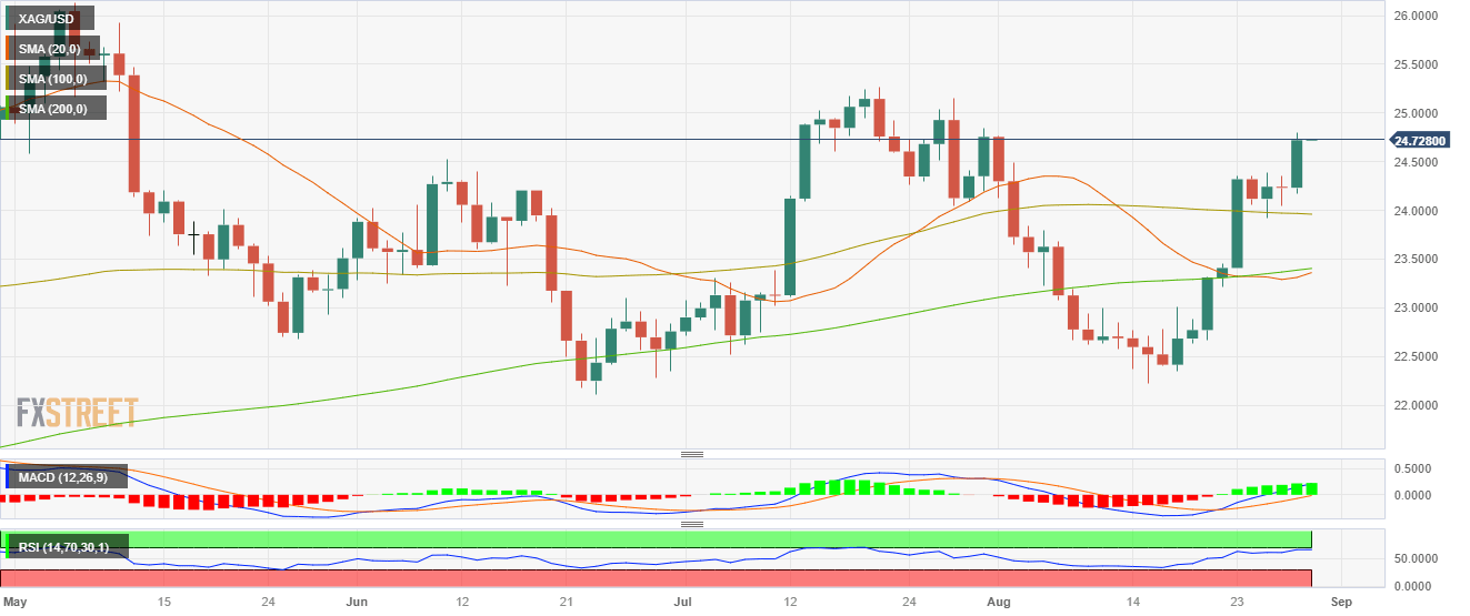 - XAG/USD advanced near the $24.70 area, showing more than 2% of daily gains.