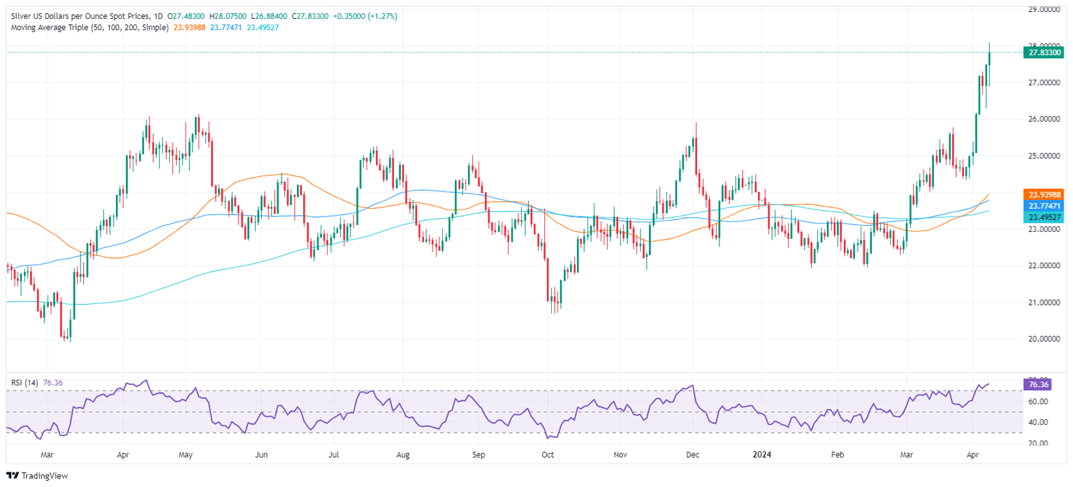 Silver’s price rose for the second straight day, climbing to $27.80, gaining more than 1% in late trading on Monday’s North American session, even though US Treasury bond yields advanced. Even though speculations that the US Federal Reserve could cut twice instead of three times were no excuse for the grey’s metal advance linked to Gold’s rally. Appetite for precious metals increased as global central banks increased their reserves in Gold.