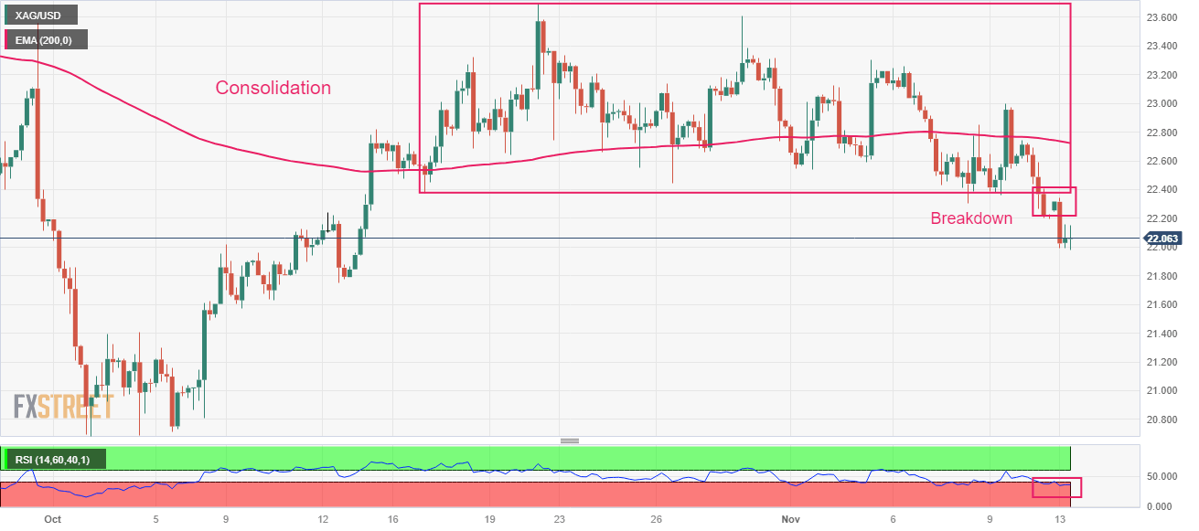Silver Price Analysis: XAG/USD refreshes monthly low near $22 ahead of US CPI