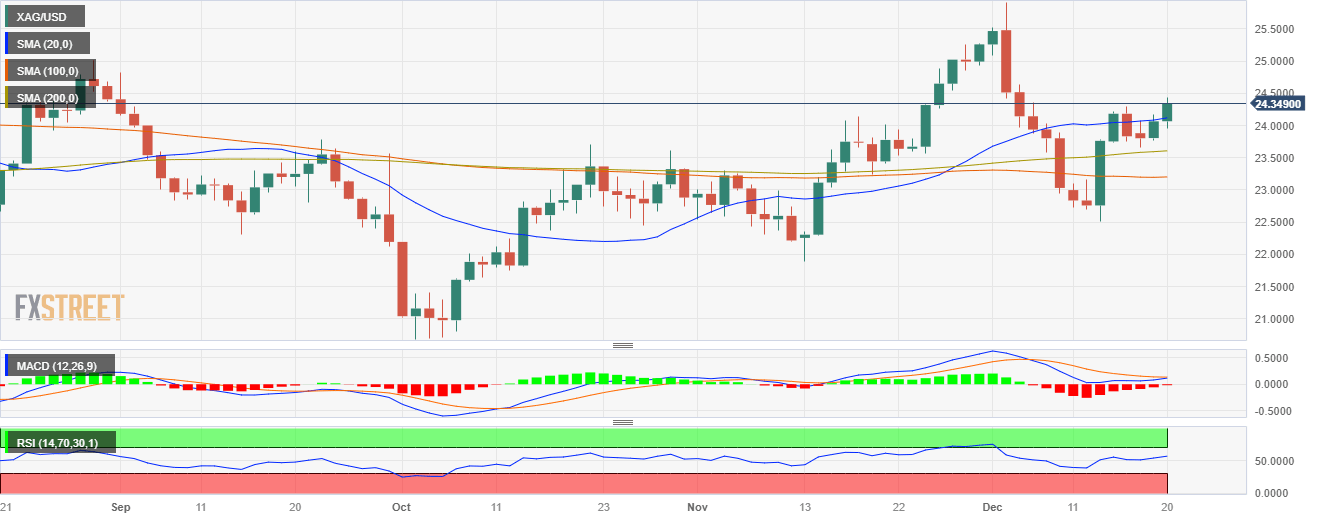 - The XAG/USD approaches the $24.30 level, showing a 1% rally.