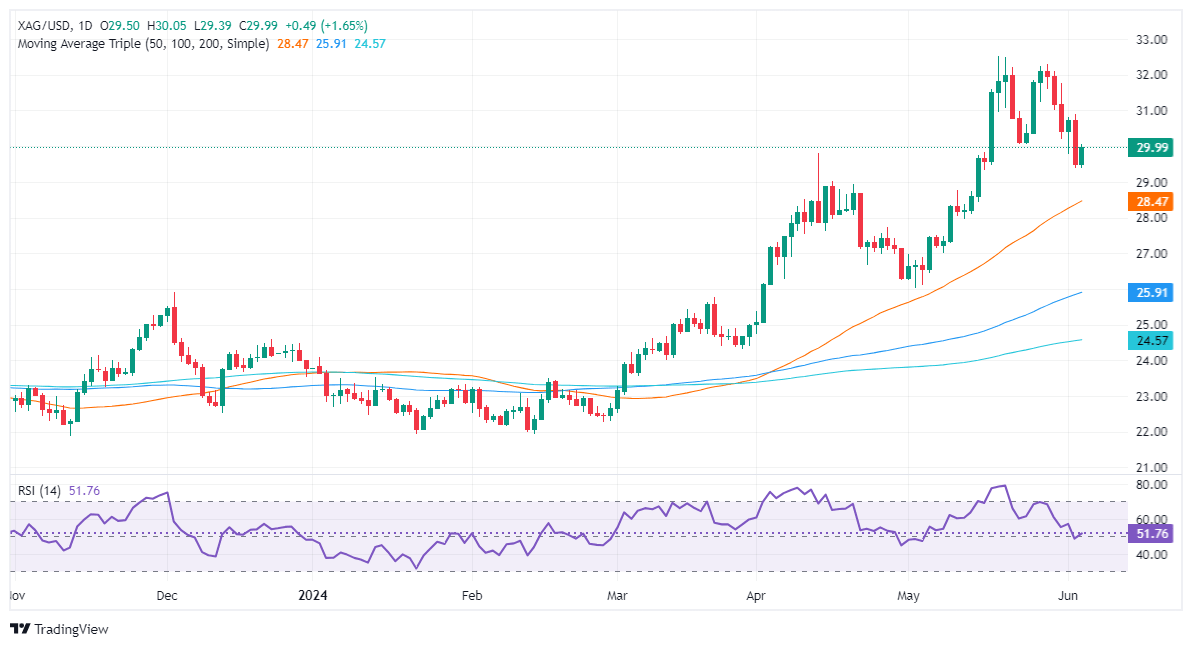 Silver Price Analysis: XAG/USD rises and tests ‘double top’ neckline around $30.00