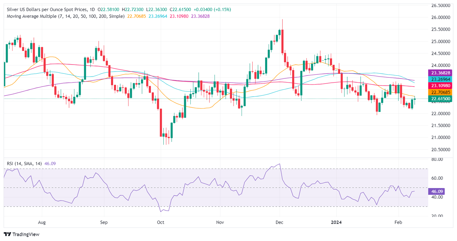 Silver price prints minimal gains of 0.15% on Friday even though US Treasury bond yields climbed. Nevertheless, the Greenback remains down, a tailwind for Silver prices, which trade at $22.60 after jumping from a low of $22.37.