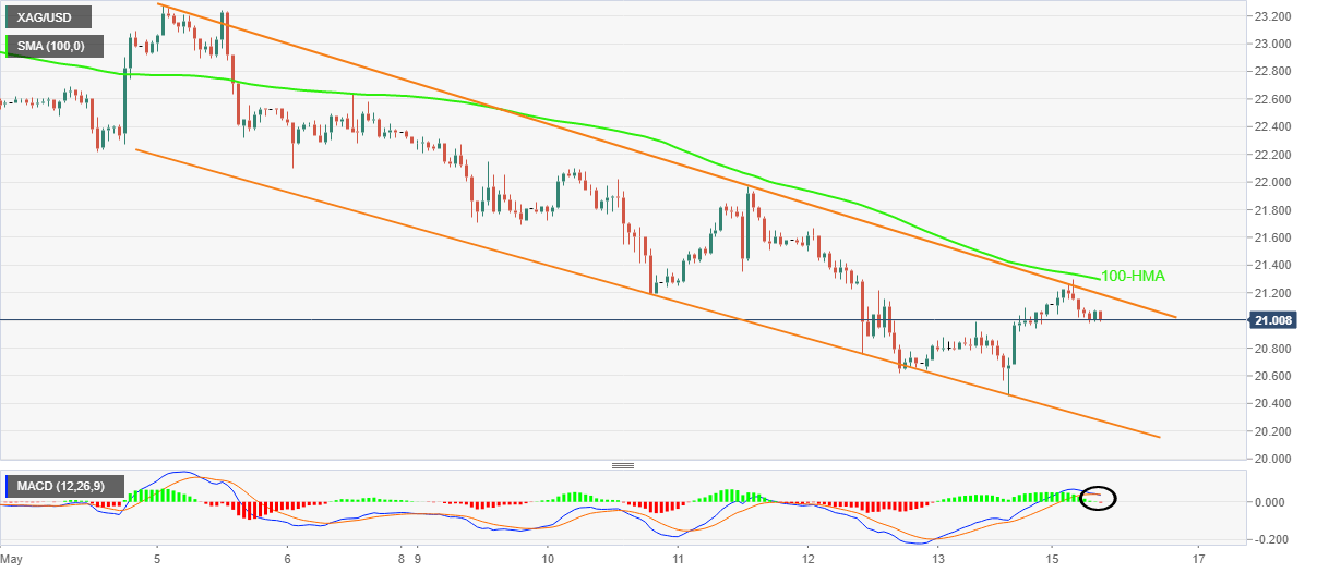 Silver Price Analysis: XAG/USD sellers flirt with $21.00 inside weekly falling channel