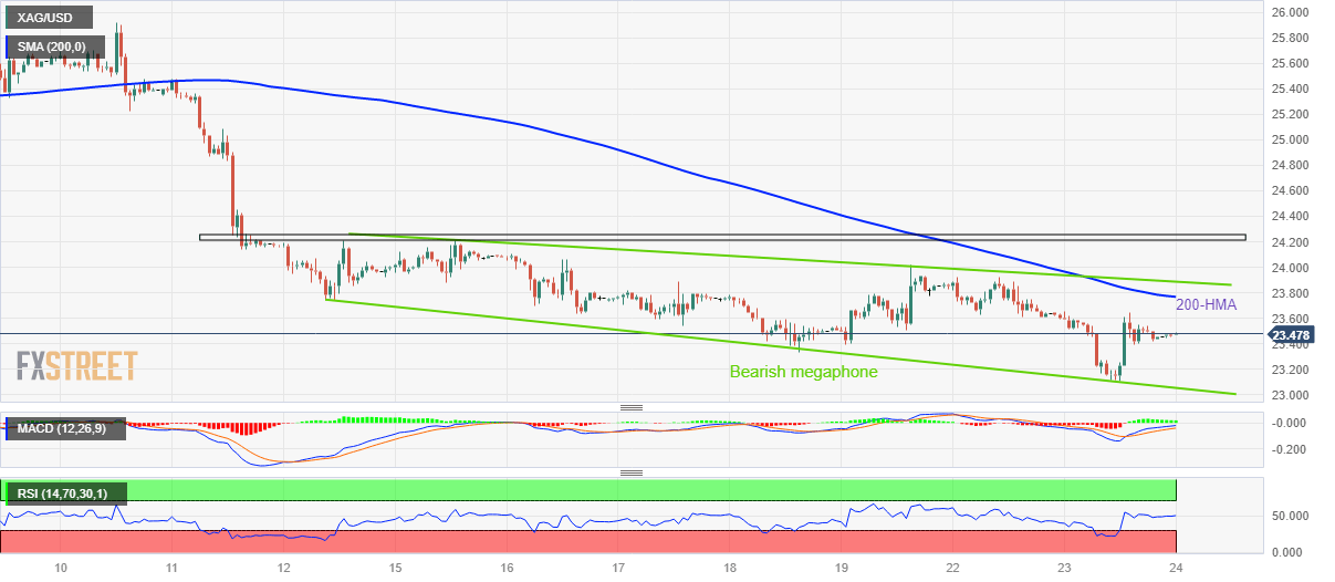 Alternatively, XAG/USD recovery may aim for the 200-HMA hurdle, near $23.75 by the press time. Following that, the stated chart formation’s top line, close to $23.90, as well as the $24.00 round figure may prod the Silver buyers.
