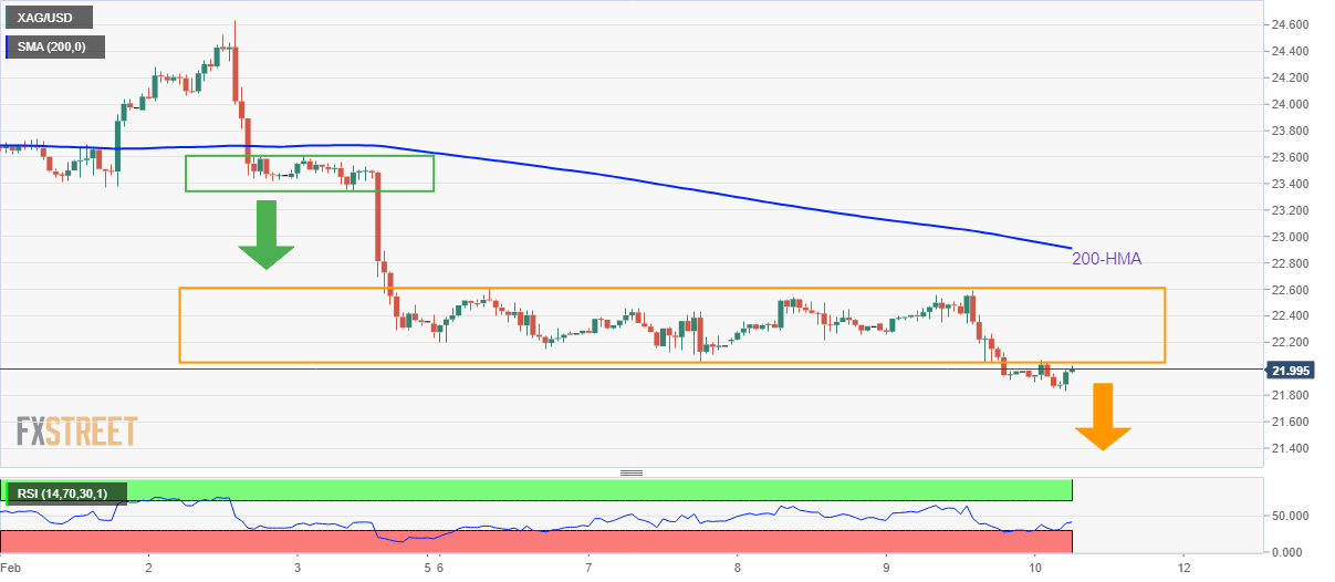 Silver Price Analysis: XAG/USD stays on bear's radar around $22.00