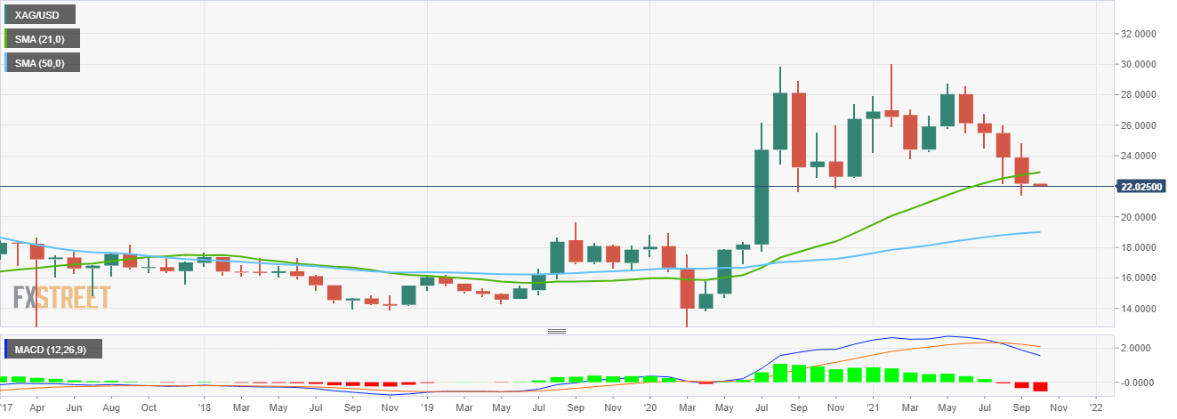 Silver Price (XAG/USD) remains poised to close the week on a lower note. The prices opened higher but failed to preserve the momentum. At the time of writing, XAG/USD trades at $22.03, down 0.61% for the day.