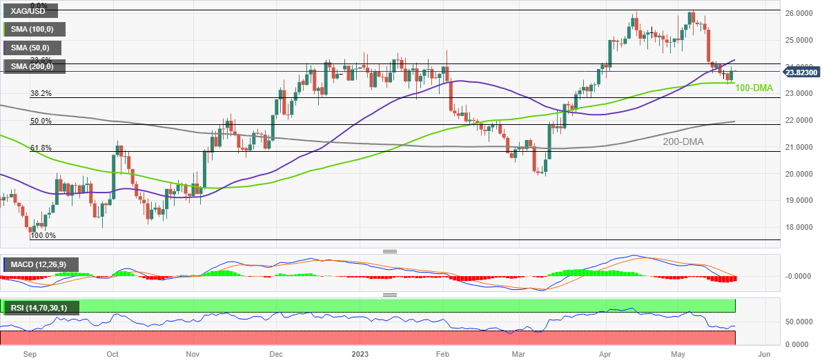 Silver Price Analysis: XAG/USD struggles to keep bounce off 100-DMA below $24.00