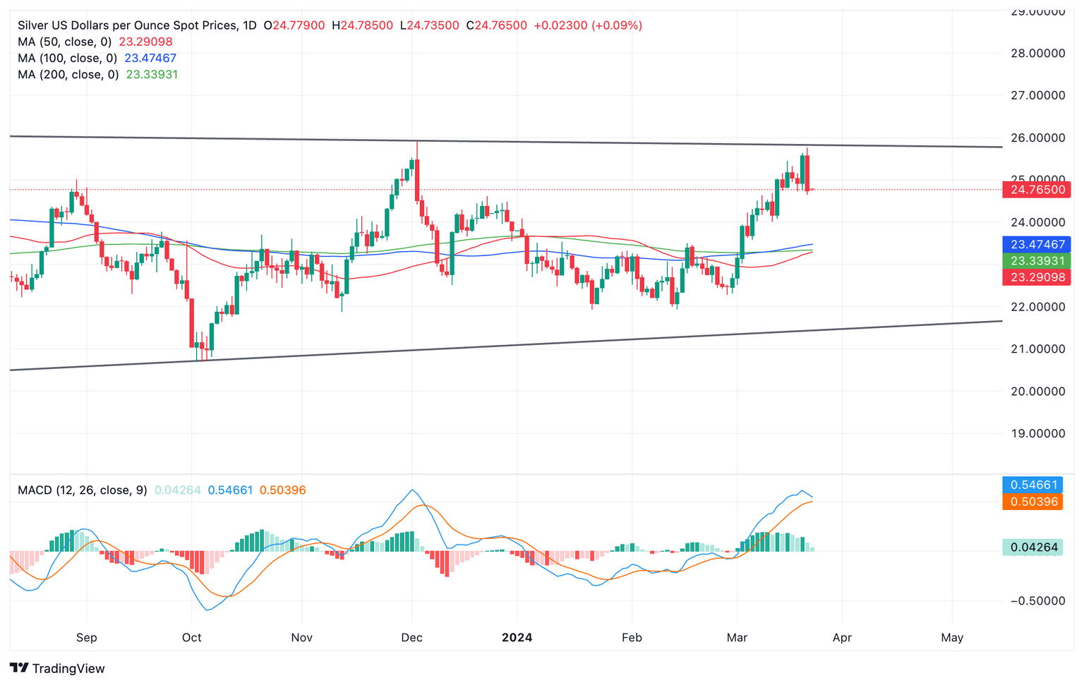 Silver versus US Dollar: Daily chart