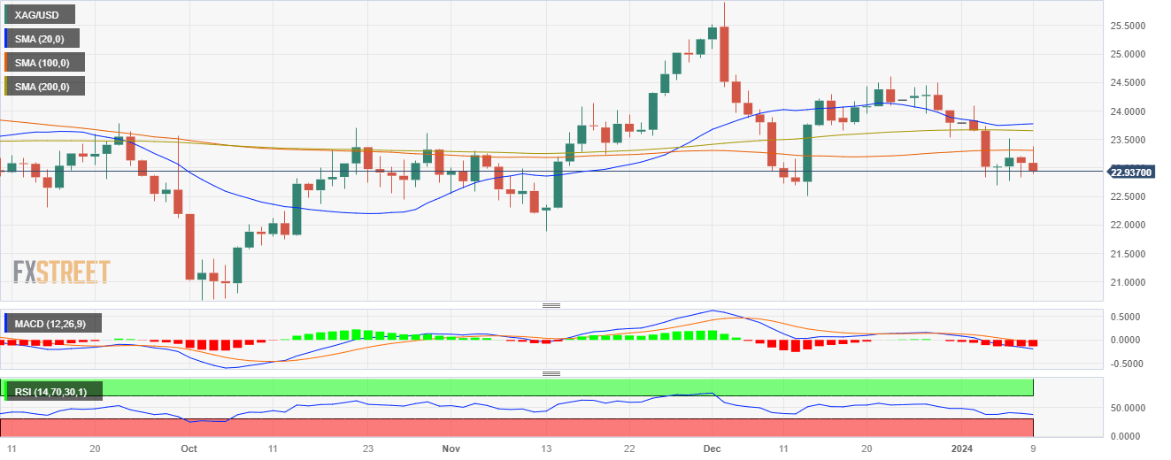 Silver Price Analysis: XAG/USD trading at a loss, gains rejected at 100-day SMA amid US recovery