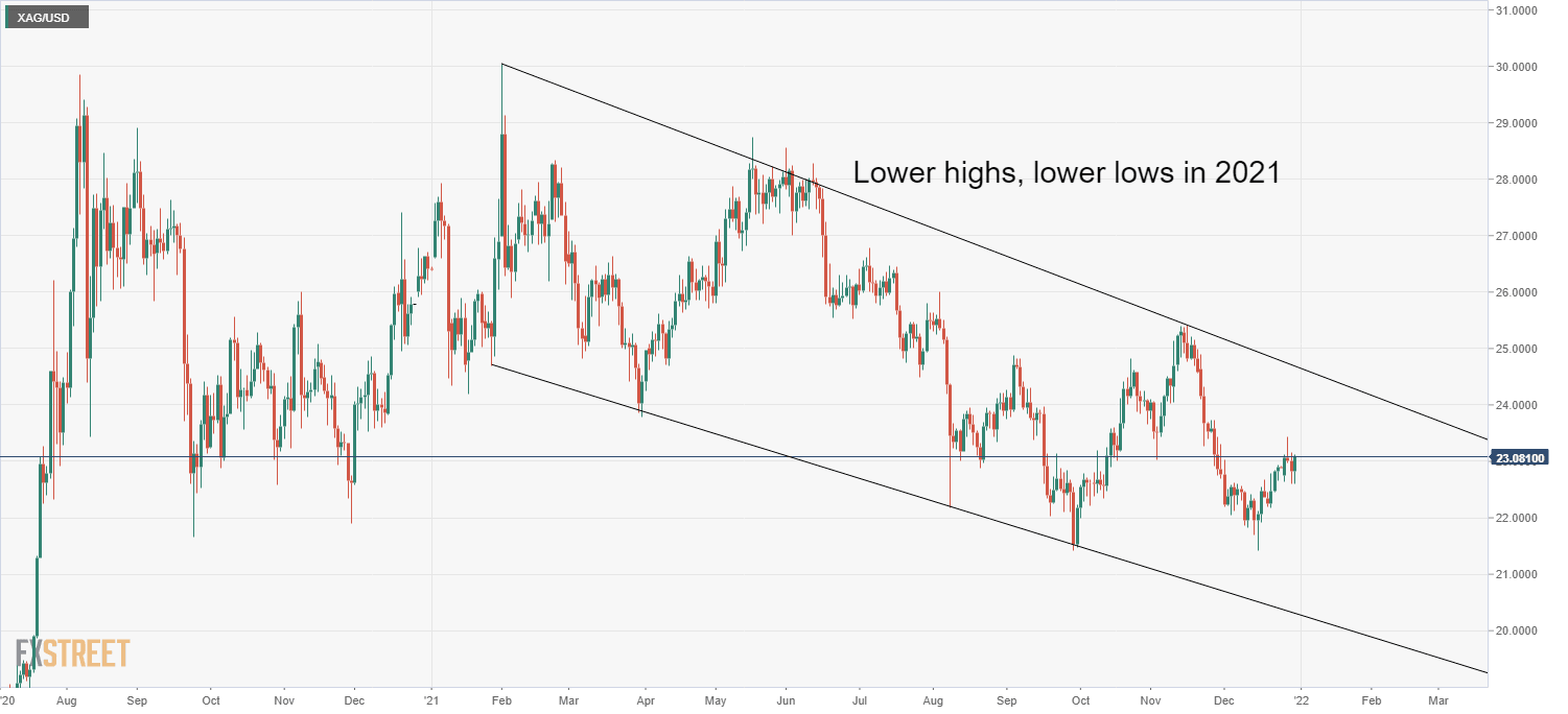 - XAG/USD traders should keep their eyes on inflation expectations and real yields in 2022 as the Fed pivots hawkishly.