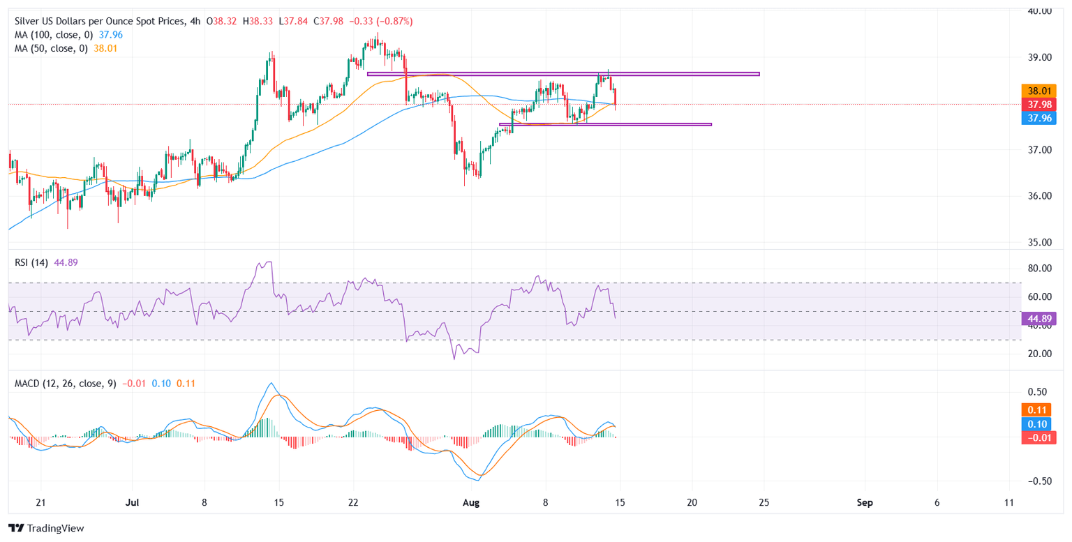 - XAG/USD consolidates between $38.50 resistance and $37.50 support, with momentum turning neutral.