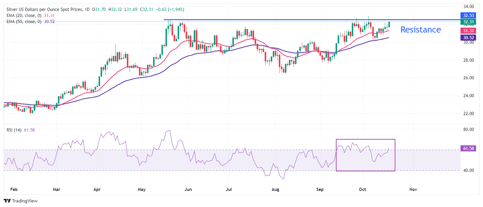 Silver Price Forecast: XAG/USD breaks above $32 as few catalysts improve its safe-haven demand