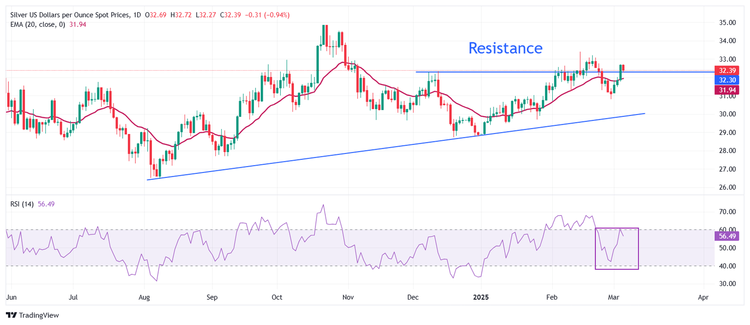 - Silver price falls to near $32.40 as US President Trump relaxes tariffs on automobiles from Canada and Mexico for a month.