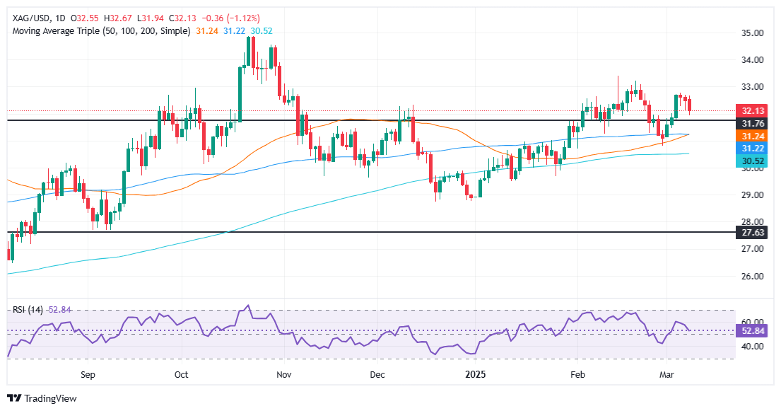 Therefore, if XAG/USD climbs past $32.50, the next resistance would be the 32.76 March 6 peak, followed by the $33.00 mark. Bulls could challenge the February 14 $33.39 mark, ahead of $34.00 if surpassed.