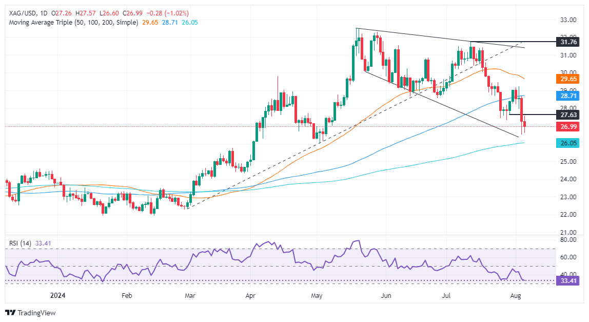 - Silver price drops below $27.00, closing lower for the second consecutive day.